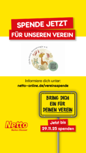Noch in dieser Woche kann man in den folgenden Netto Filialen durch Aufrunden an der Kasse oder Abgabe des Pfandzettels für den Förderkreis spenden – und am kommenden Freitag wird der Betrag von Netto sogar verdoppelt: