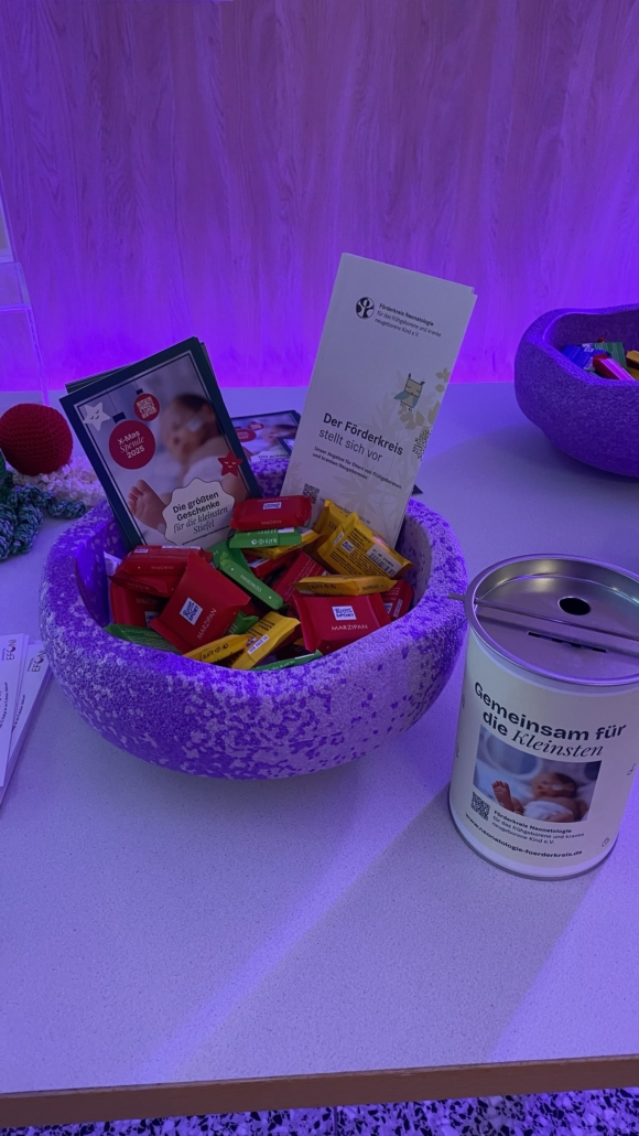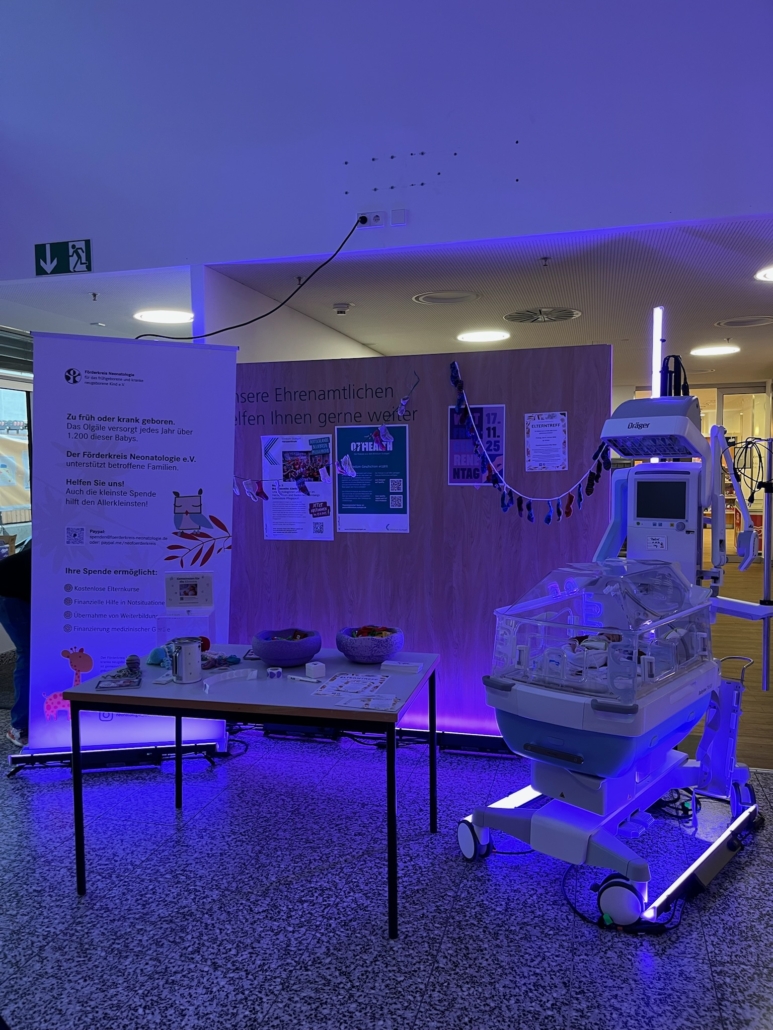 Außerdem haben wir über unsere Angebote für Eltern auf Station und auch nach der Entlassung sowie unsere Arbeit im Förderkreis informiert. Immer wieder ist es für uns alle überraschend, wie viele Menschen betroffene Eltern kennen – und so wurde es einmal mehr greifbar, wie groß die Patientengruppe Frühgeborene tatsächlich ist. Besonders toll war, dass wir uns bei einigen Eltern vorstellen konnten, die aktuell ihre Zeit auf der Neo verbringen.